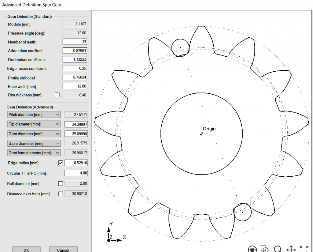 The heat-treatment process steps include gas carburizing, austenitizing, transferring to quench tank, oil quenching, and tempering. Using IGD, the pre-heat-treatment geometry is built from standard parameters such as number of teeth, diametral pitch, and base, form, and root base diameters, shown in Figure 1.