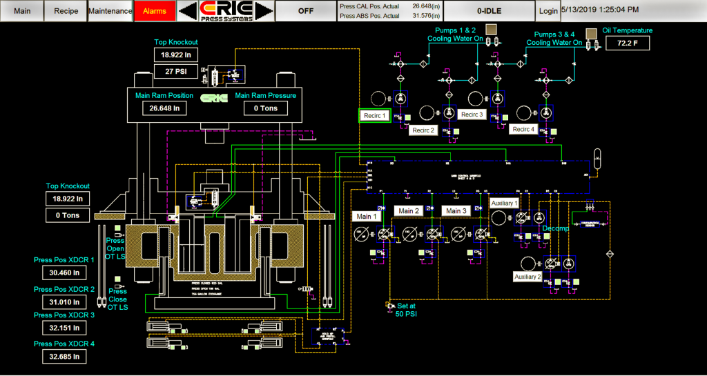 Visual interfaces are especially helpful in training less experienced personnel as well. Live press positional and force data can be viewed as the machine transitions through the production cycle, and graphical windows into the control system allow quick identification of errors when something is out of sequence or stops unexpectedly.