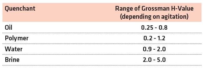 Table 1: Typical quench severity achievable with various quenchants.