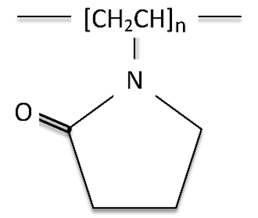 Polyvinyl pyrrolidone (PVP) is derived from the polymerization of N-vinyl-2-pyrrolidone [6] (Figure 14). Polyvinyl pyrrolidone is a water-soluble polymer characterized by its unusual physical and colloidal properties and by its physiological inertness [7] [8].